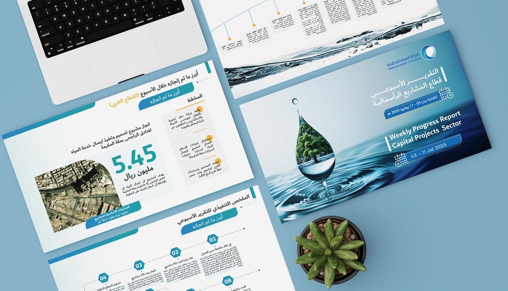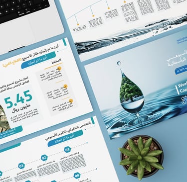 I worked on preparing and formatting a weekly report document presenting the most important achievements, submitted to the Saudi National Water Company. This included following the required technical information, organizing the content professionally, and formatting it in a simple, formal, yet distinctive manner. The approved specifications and standards were adhered to, while the presentation was designed in a clear and coordinated manner. This document was completed in just five hours and was a good opportunity to collaborate with the company in the form of freelance work.